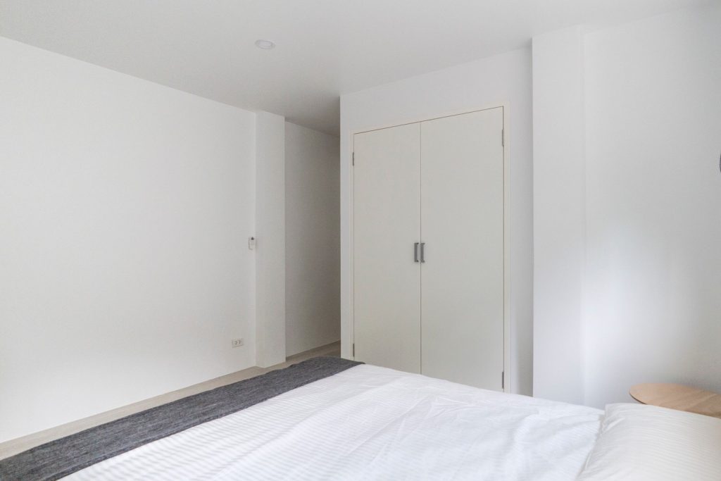 – เตียงนอน 1 เตียง + ตู้เสื้อผ้าบิ้วอิน